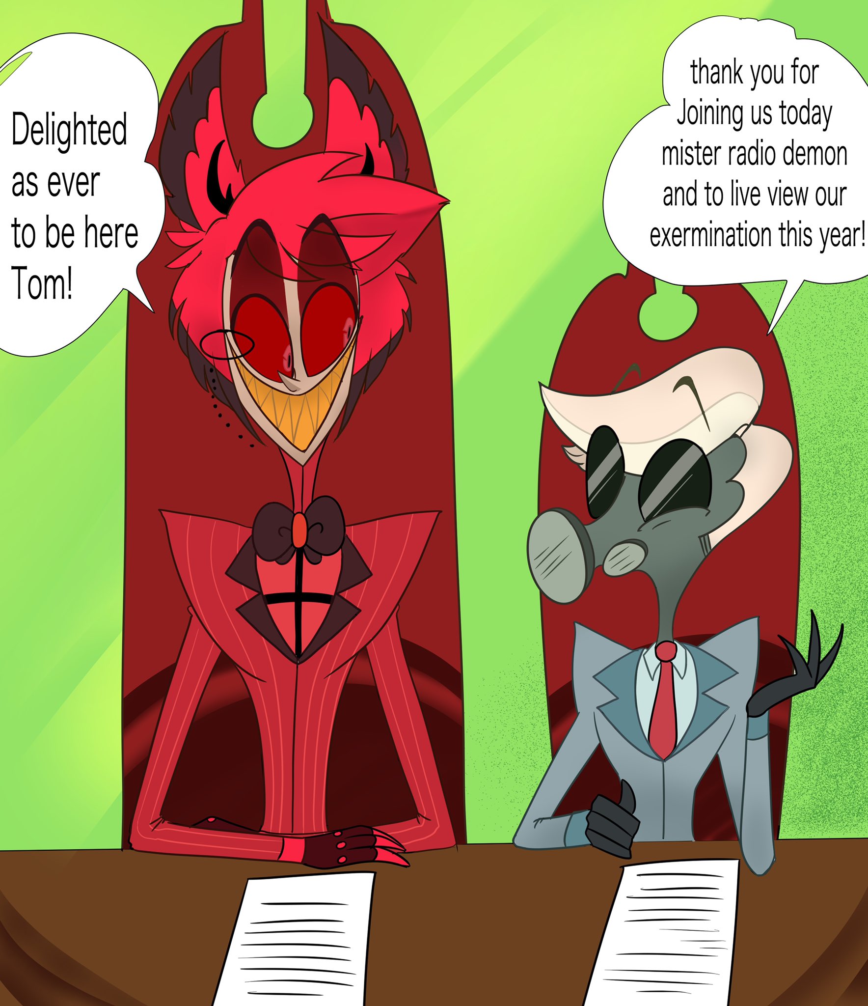 Ravenousscorpian Sale Closed On Twitter Welcome To Hell S New Segment Extermination Asmr With Your Two Host Tom Trench And The Radio Demon Clownscrawny And Me Head Canon Alastor And Tom Live Feed The